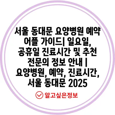서울 동대문 요양병원 예약 어플 설명서| 일요일, 공휴일 진료시간 및 추천 전연락 정보 공지 | 요양병원, 예약, 진료시간, 서울 동대문 2025 에 대해 자주 묻는 질문 TOP 5