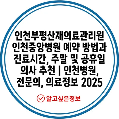 인천부평산재의료관리원 인천중앙병원 예약 방법과 진료시간, 주말 및 공휴일 의사 추천 | 인천병원, 전연락, 의료정보 2025에 대해 알아보겠습니다.