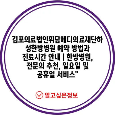 ✅ 김포한방병원의 예약 절차와 진료시간을 쉽게 알아보세요.