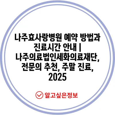 나주효사랑병원 예약 방법과 진료시간 공지 | 나주의료법인세화의료재단, 전연락 추천, 주말 진료, 2025 에 대해 자주 묻는 질문 TOP 5