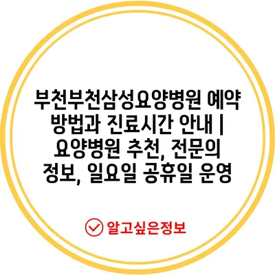 ✅ 부천삼성요양병원의 예약 방법을 지금 바로 알아보세요!