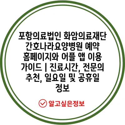 포항의료법인 화암의료재단 간호나라요양병원 예약 홈페이지와 어플 앱 이용 설명서 | 진료시간, 전연락 추천, 일요일 및 공휴일 정보 에 대해 자주 묻는 질문 TOP 5