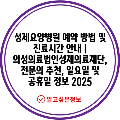 성제요양병원 예약 방법 및 진료시간 공지 | 의성의료법인성제의료재단, 전연락 추천, 일요일 및 공휴일 정보 2025 에 대해 자주 묻는 질문 TOP 5