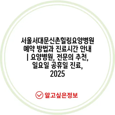서울서대문신촌힐링요양병원 예약 방법과 진료시간 공지 | 요양병원, 전연락 추천, 일요일 공휴일 진료, 2025 에 대해 자주 묻는 질문 TOP 5
