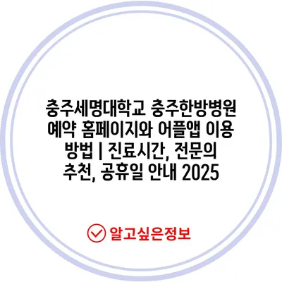 충주세명대학교 충주한방병원 예약 홈페이지와 어플앱 이용 방법 | 진료시간, 전문의 추천, 공휴일 안내 2025