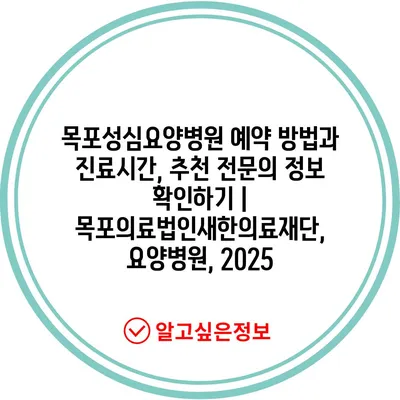 목포성심요양병원 예약 방법과 진료시간, 추천 전연락 정보 확인하기 | 목포의료법인새한의료재단, 요양병원, 2025에 대해 알아보겠습니다.