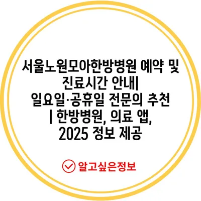 서울노원모아한방병원 예약 및 진료시간 공지| 일요일·공휴일 전연락 추천 | 한방병원, 의료 앱, 2025 정보 제공 에 대해 자주 묻는 질문 TOP 5