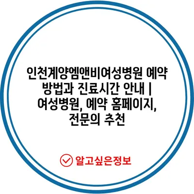 ✅ 인천계양엠앤비여성병원의 예약 절차를 자세히 알아보세요.