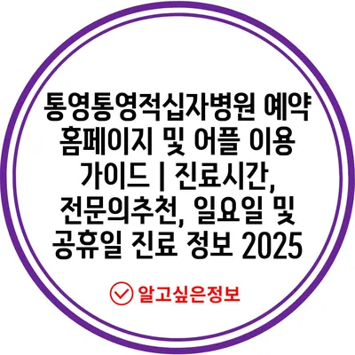 통영통영적십자병원 예약 홈페이지 및 어플 이용 가이드 | 진료시간, 전문의추천, 일요일 및 공휴일 진료 정보 2025