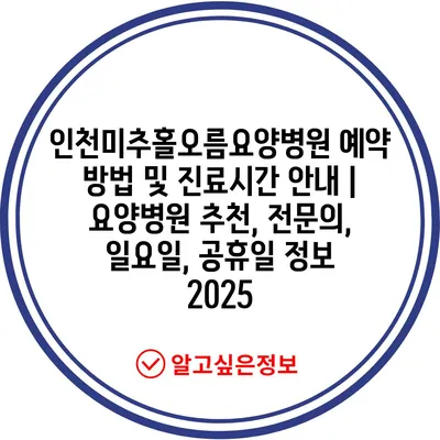 인천미추홀오름요양병원 예약 방법 및 진료시간 공지 | 요양병원 추천, 전연락, 일요일, 공휴일 정보 2025 에 대해 자주 묻는 질문 TOP 5