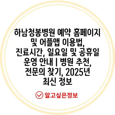 하남청봉병원 예약 홈페이지 및 어플앱 이용법, 진료시간, 일요일 및 공휴일 운영 공지 | 병원 추천, 전연락 찾기, 2025년 최신 정보 에 대해 자주 묻는 질문 TOP 5